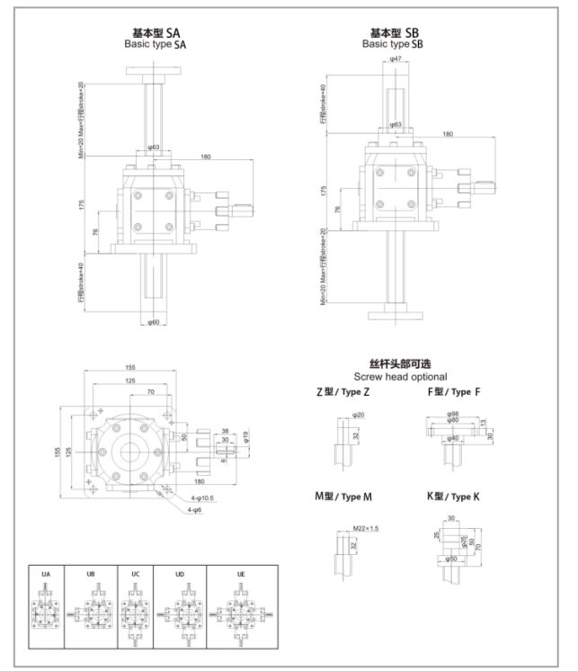 SNB丝杆升降机,特性为滚珠螺母置于壳体内,使用滚珠螺杆和螺母,由淬硬合金钢制成,带着螺母和丝杆之间的负载。这种滚动动作可以减少螺母和丝杆之间的摩擦,从而使负载平稳地移动。由于工作效率和滚动性能的提高,与普通梯形丝杆升降机相比,滚珠丝杆可以在更高的速度或更大的工作周期内进行操作。