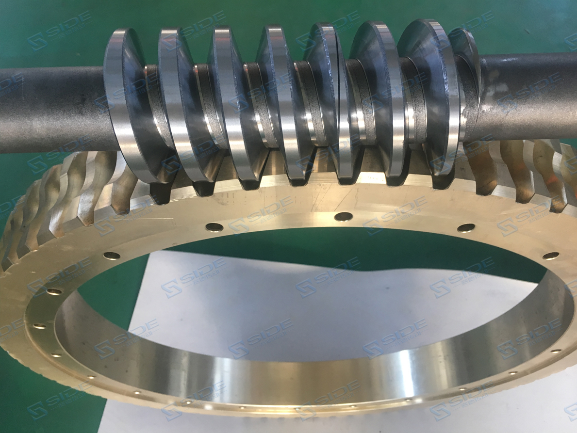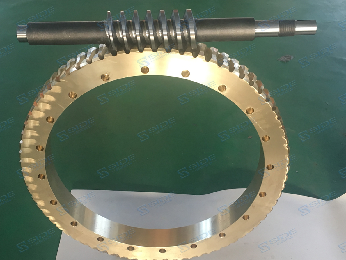 1.减速机发热和漏油。为了提高效率,蜗轮减速机一般均采用有色金属做蜗轮,蜗杆则采用较硬的钢材。由于是滑动摩擦传动,运行中会产生较多的热量,使减速机各零件和密封之间热膨胀产生差异,从而在各配合面形成间隙,润滑油液由于温度的升高变稀,易造成泄漏。造成这种情况的原因主要有四点,一是材质的搭配不合理;二是啮合摩擦面表面的质量差;三是润滑油添加量的选择不正确;四是装配质量和使用环境差。2.蜗轮磨损。蜗轮一般采用锡青铜,配对的蜗杆材料用45钢淬硬至HRC45~55,或40Cr淬硬HRC50~55后经蜗杆磨床磨削至粗糙度Ra0.8μm。减速机正常运行时磨损很慢,某些减速机可以使用10年以上。如果磨损速度较快,就要考虑选型是否正确,是否超负荷运行,以及蜗轮蜗杆的材质、装配质量或使用环境等原因。3.传动小斜齿轮磨损。一般发生在立式安装的减速机上,主要与润滑油的添加量和油品种有关。立式安装时,很容易造成润滑油量不足,减速机停止运转时,电机和减速机间传动齿轮油流失,齿轮得不到应有的润滑保护。减速机启动时,齿轮由于得不到有效润滑导致机械磨损甚至损坏。4.蜗杆轴承损坏。发生故障时,即使减速箱密封良好,还是经常发现减速机内的齿轮油被乳化,轴承生锈、腐蚀、损坏。这是因为减速机在运行一段时间后,齿轮油温度升高又冷却后产生的凝结水与油混合。当然,也与轴承质量及装配工艺密切相关。